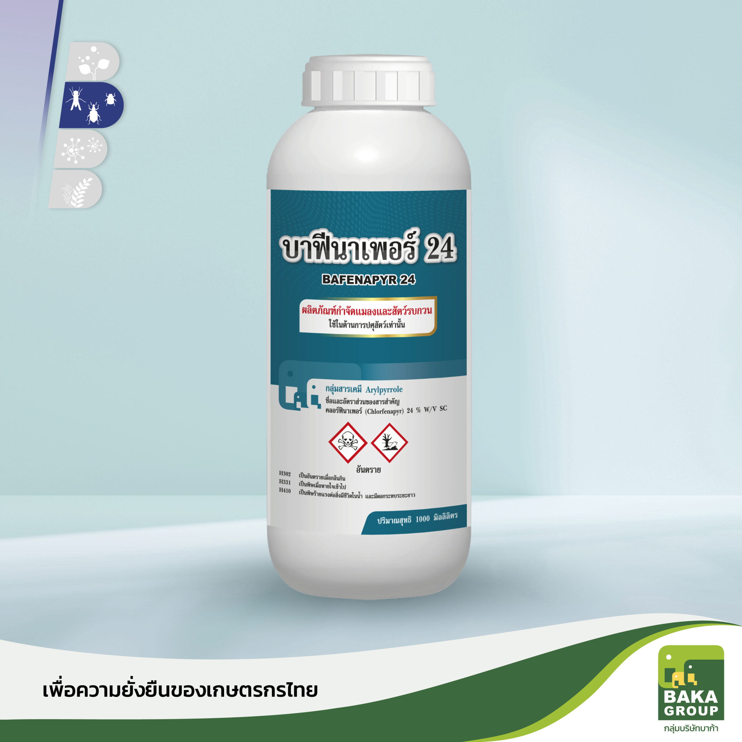 - ชื่อสามัญ : คลอร์ฟีนาเพอร์ (chlorfenapyr) 24% W/V SC